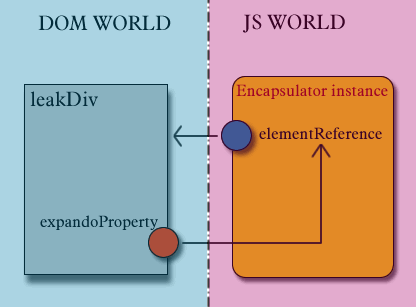Here is a diagram describing the closure which creates a circular reference between the DOM world and the JS world.